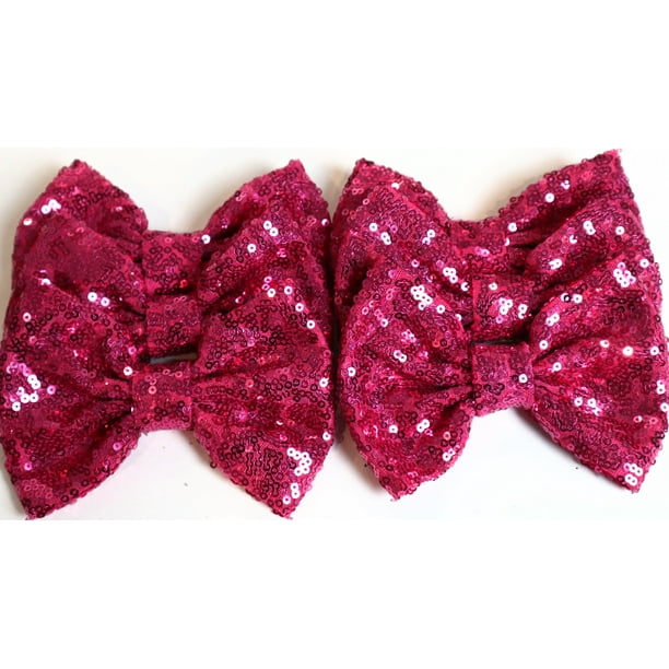 Set Of 12 Hot Pink Sequin Bows 5 Inches Large Glitter Bows Wholesale Bows Diy Fabric Hair Bows No Clips Walmart Com